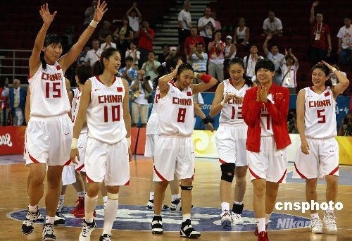 8月19日下午,北京奧運會女子籃球四分之一淘汰賽在北京五棵松籃球館舉行,中國女籃以77比62擊敗白俄羅斯率先進入前四強。這是16年之后中國女籃再次闖進奧運四強。中新社發(fā) 任晨鳴 攝
