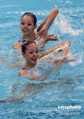 8月20日,北京奧運(yùn)會(huì)花樣游泳雙人項(xiàng)目比賽全部結(jié)束,中國組合蔣婷婷/蔣文文的總成績?yōu)?6.334分,位列第四,創(chuàng)造了中國花樣游泳在奧運(yùn)會(huì)上的最好成績。俄羅斯組合阿納斯塔西婭·達(dá)維多娃/阿納斯塔西婭·葉爾馬科娃以總分99.251分奪金。西班牙組合安德魯·富恩特斯/赫瑪·門瓜爾以總分98.334分獲銀牌。日本組合原田早穗/鈴木繪美子總分為97.167分獲銅牌。中新社發(fā) 杜洋 攝