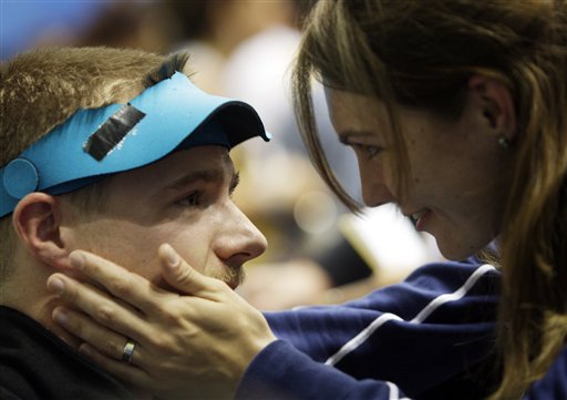 全場愕然。一個令人難忘的畫面出現(xiàn)了:埃蒙斯的妻子卡特琳娜先是茫然,然后眼神柔和下來,探身上前,將埃蒙斯攬在懷里。一會兒,埃蒙斯回過神來,與其他射手和裁判打過招呼,走出去,中途不停地接受記者的問詢。埃蒙斯還帶著笑容,雖然有些苦澀。