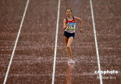 北京奧運(yùn)會(huì)女子20公里競走8月21日上午在大雨中舉行,俄羅斯選手奧莉加·卡尼斯金娜以1小時(shí)26分31秒的成績獲得金牌;挪威選手謝斯蒂·蒂瑟·普拉策以1小時(shí)27分07秒的成績奪得銀牌;意大利選手埃莉薩·里高多以1小時(shí)27分12秒的成績獲得銅牌。中國選手劉虹成績?yōu)?小時(shí)27分17秒,名列第四,無緣獎(jiǎng)牌。 中新社發(fā) 任晨鳴 攝