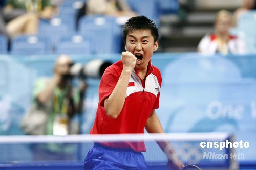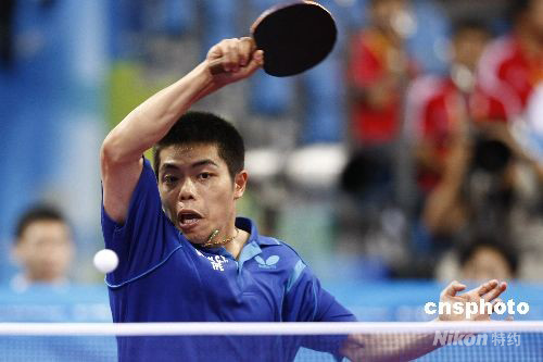 8月21日,北京奧運(yùn)會(huì)乒乓球男子單打第三輪的比賽在北京大學(xué)體育館進(jìn)行,中華臺(tái)北選手莊智淵3比4不敵新加坡選手揚(yáng)子,無(wú)緣下一輪比賽。中新社發(fā) 盛佳鵬 攝