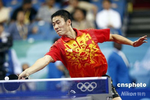 8月21日,北京奧運(yùn)會乒乓球男子單打第三輪的比賽在北京大學(xué)體育館進(jìn)行,中國選手王勵勤4比0戰(zhàn)勝波蘭選手盧希安·布拉什切克,晉級下一輪比賽。中新社發(fā) 盛佳鵬 攝