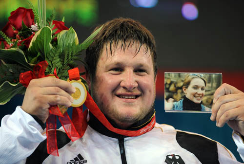 德國大力士馬蒂亞斯·施泰納用一枚沉甸甸的奧運金牌來祭奠亡故的妻子。