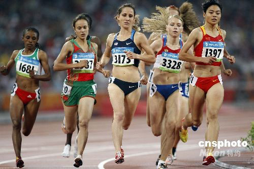 8月21日,北京奧運會田徑比賽女子1500米預(yù)賽在國家體育場進(jìn)行,中國選手劉青(右一)位列小組第9名,無緣決賽。中新社發(fā) 盛佳鵬 攝