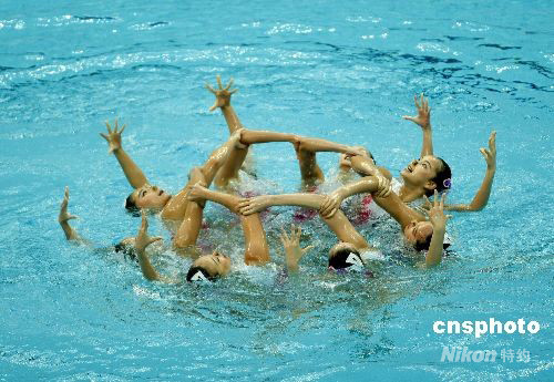 圖:中國姑娘暫列花樣游泳集體技術自選第三(2)