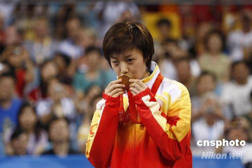 圖:張怡寧北京奧運衛(wèi)冕 親吻金牌