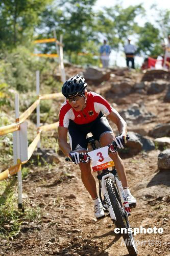 8月23日,北京奧運(yùn)會(huì)自行車山地分項(xiàng)女子越野賽在北京老山山地自行車場(chǎng)舉行。德國(guó)選手扎比內(nèi)·施皮茨一路保持領(lǐng)先,最終以1小時(shí)45分11秒的成績(jī)順利摘金。波蘭選手馬婭·沃什佐夫斯卡獲得銀牌,俄羅斯選手伊琳娜·卡連季耶娃獲得銅牌。中國(guó)選手任成遠(yuǎn)獲得了第5名,另一位中國(guó)選手劉穎最終獲得第12名。中新社發(fā) 盛佳鵬 攝