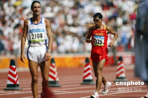 8月24日,北京奧運會田徑比賽的最后一天,在男子馬拉松的比賽中,肯尼亞選手塞繆爾-卡馬烏以2小時06分32秒奪冠,并且打破了奧運會紀(jì)錄。銀牌被摩洛哥選手賈瓦德-加里卜以2小時07分16秒奪得,同樣打破了奧運會紀(jì)錄,第三名被埃塞俄比亞的策加耶-凱貝德-沃爾多法以2小時10分00秒獲得。中國選手鄧海洋和李柱宏以2小時16分17秒和2小時24分08秒分列第25位和51位。中新社發(fā) 盛佳鵬 攝