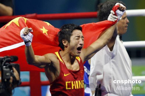 8月24日,在男子拳擊輕蠅量級(jí)(48公斤級(jí))比賽中,因蒙古選手普列布道爾吉·塞爾丹巴在第二局棄權(quán),中國(guó)拳王鄒市明奪得金牌。這是中國(guó)參加奧運(yùn)會(huì)以來(lái)獲得的第一枚拳擊金牌。