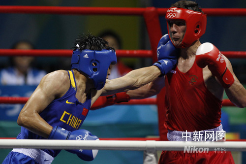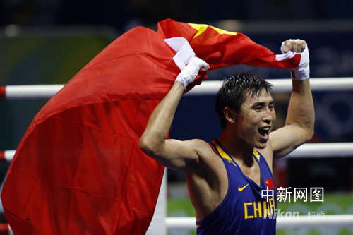 2008北京奧運(yùn)會(huì)男子拳擊輕重量級(jí)(81公斤級(jí))決賽在北京工人體育館激烈展開。經(jīng)過四回合8分鐘的艱苦對(duì)決,張小平最終以11-7力克愛爾蘭選手肯尼-伊根奪魁,這是中國拳擊繼鄒市明之后斬獲的第二個(gè)奧運(yùn)會(huì)冠軍,同時(shí)也是中國軍團(tuán)在本屆奧運(yùn)會(huì)上收獲得第51枚金牌。 中新社記者 盛佳鵬 攝