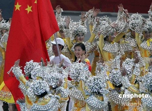 8月24日晚,第二十九屆夏季奧林匹克運(yùn)動(dòng)會(huì)在北京閉幕。33歲的羽壇老將、上屆及本屆奧運(yùn)會(huì)羽毛球女子單打兩屆冠軍張寧擔(dān)任中國(guó)代表團(tuán)旗手。中新社發(fā) 任晨鳴 攝