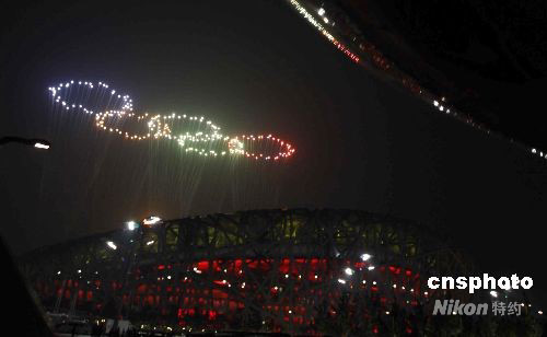 8月24日晚,第二十九屆夏季奧林匹克運(yùn)動(dòng)會(huì)在北京閉幕。閉幕式上燃放的彩色“五環(huán)”焰火獨(dú)特新穎。 中新社發(fā) 盛佳鵬 攝