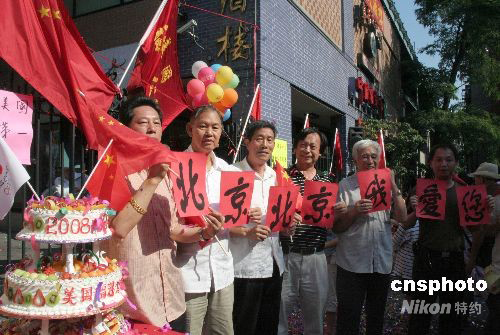 圖為紐約福建公所的幾位華僑,打出“北京北京我愛您”標(biāo)語,驕傲之情溢于言表。