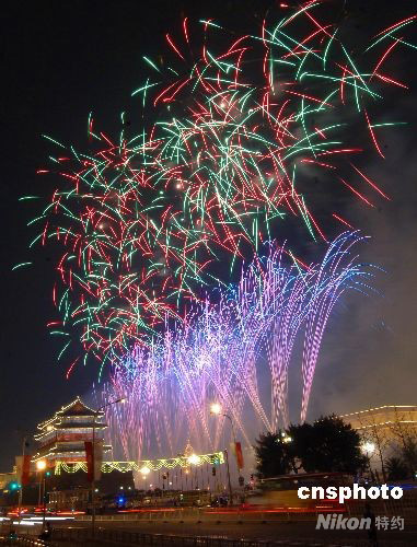 8月24日晚,第29屆夏季奧運(yùn)會(huì)在北京國(guó)家體育場(chǎng)“鳥(niǎo)巢”勝利閉幕。北京天安門(mén)廣場(chǎng)燃放了20分鐘焰火,將正陽(yáng)門(mén)上空照耀得絢麗多彩。中新社發(fā) 鄒憲 攝
