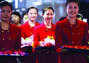 來自昌平職業(yè)學(xué)校的嚴(yán)冬是這次奧運禮儀志愿者中為數(shù)不多的男生,剛剛結(jié)束奧運鳥巢VIP服務(wù)的他即將在首都機場外幣兌換窗口上崗。另一位美麗的禮儀小姐郭彤在結(jié)束奧運頒獎禮儀的志愿服務(wù)后也被首都機場的客艙服務(wù)錄用了。為了能在奧運禮儀服務(wù)中展示迷人微笑,他們每天訓(xùn)練時都要要咬著一根筷子20多分鐘,保持露出6到8顆牙齒。