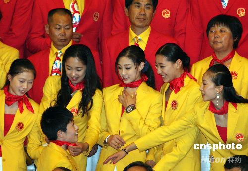 8月26日,2008年北京奧運(yùn)會中國體育代表團(tuán)總結(jié)大會在北京人民大會堂金色大廳舉行。中國藝術(shù)體操隊員參加北京奧運(yùn)會中國體育代表團(tuán)總結(jié)大會。 中新社發(fā) 廖文靜 攝