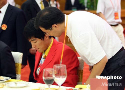 圖:劉翔參加北京奧運(yùn)中國體育代表團(tuán)宴會