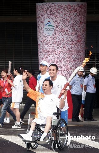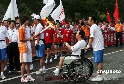 2008年8月31日上午,北京殘奧會(huì)圣火在武漢傳遞。中新社發(fā) 攝記 攝