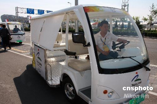 9月2日,一批新型的無障礙電瓶車北京奧運(yùn)村“上崗”。據(jù)悉,從8月10日起,50輛無障礙電瓶車在奧林匹克公園公共區(qū)“上崗”,并將使用到殘奧會(huì)結(jié)束。殘奧會(huì)期間,老年人、殘疾人到“鳥巢”、“水立方”等場館觀看比賽,可不必?fù)?dān)心行動(dòng)不便帶來的問題。每輛電瓶車可提供輪椅服務(wù),同時(shí)配備一名觀眾服務(wù)志愿者,全程為行動(dòng)不便的觀眾提供服務(wù)。中新社發(fā) 鄭雄增 攝