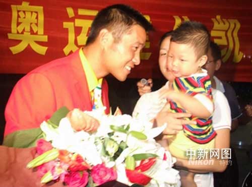 北京奧運(yùn)會(huì)結(jié)束已近十天,妻子徐鋒月一直期盼著丈夫的歸來。對于她來說,丈夫今晚歸來也是很突然的!皧W運(yùn)會(huì)結(jié)束后,他還是特別的忙,出席各式各樣的活動(dòng),每天都要忙到十二點(diǎn)才能休息,所以我很少能聯(lián)系上他。直到昨天,他才告訴我今天要回來。”徐鋒月還特意將十五個(gè)月大的兒子帶到了蕭山機(jī)場。