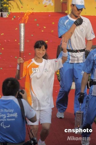 河南第一棒火炬手、河南籍殘疾姑娘朱宏艷開始北京殘奧會火炬洛陽傳遞活動。朱宏艷被譽為“中國的飛魚”,先天性眼底盲障的她曾一人獨奪殘奧會九枚游泳項目金牌、世錦賽六枚金牌。