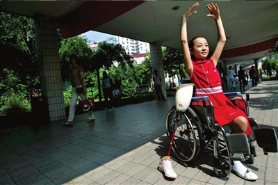 本報訊(記者李秋萌)病床上的女孩面容清秀,清澈明亮的大眼睛流露出驚恐和畏懼,因地震被截去左腿的她不知自己的芭蕾夢是否就此破滅……這張觸動人心的照片讓人們記住了李月,在為其惋惜的同時,“芭蕾女孩”的命運(yùn)也牽動了無數(shù)人的心。經(jīng)過一個月的練習(xí),昨晚在北京殘奧會開幕式中,李月作為主演與百余名殘疾演員攜手演出的《永不停跳的舞步》震撼了全場。