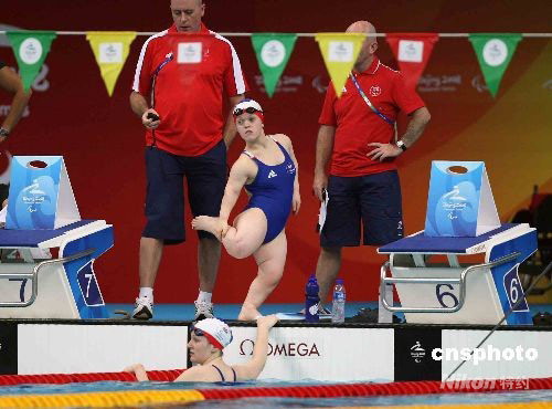 9月7日,北京殘奧會首日游泳比賽在“水立方”舉行,通過上午的預(yù)賽,晚間將產(chǎn)生16枚金牌。圖為參賽選手在下水前做準(zhǔn)備活動(dòng)。中新社發(fā) 任晨鳴 攝