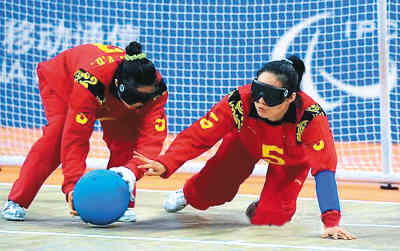 在殘奧會的第一個比賽日,中國女子盲人門球隊(duì)在首場比賽中以5∶3戰(zhàn)勝巴西隊(duì),迎來開門紅。許娟作為場上3名隊(duì)員之一,打滿了全場。比賽中,雖然她20次投球均未能攻破對方大門,但她成功地16次用身體擋住了對方的進(jìn)攻,為中國隊(duì)獲勝立下功勞。