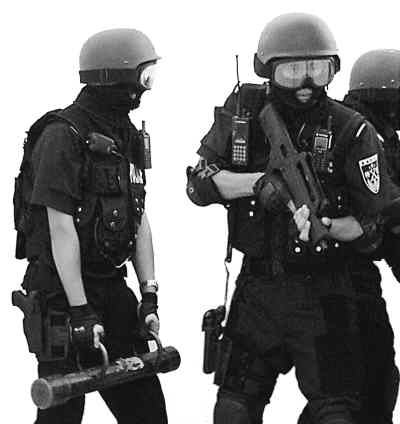 在硬件裝備上,“藍(lán)劍突擊隊(duì)”也達(dá)到了國際標(biāo)準(zhǔn)。如將原有的八一式自動(dòng)步槍更換成野戰(zhàn)部隊(duì)裝備的九五突擊步槍,將九七式微沖更換為目前國內(nèi)最先進(jìn)的零六式微型沖鋒槍。特警們頭戴的凱夫拉鋼盔也是北京市公安局首次裝備的防彈型鋼盔。