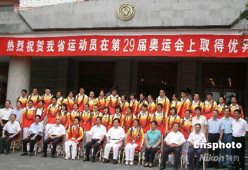 9月11日下午,在第29屆奧運會上摘金奪銀及獲得優(yōu)異成績的四川運動員、教練員,受到中共四川省委、省政府的隆重表彰,金銀銅及前8名的運動員得到了50萬元至1萬元不等的獎金。 中新社發(fā) 楊杰 攝