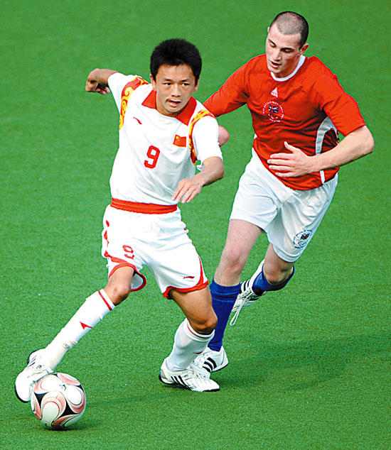 平均年齡20歲出頭、集訓(xùn)時(shí)間不到兩年的中國腦癱足球隊(duì),今天以2∶10負(fù)于英國隊(duì)。他們賽前就知道自己遠(yuǎn)不是那些平均年齡近40歲、配合時(shí)間長達(dá)十余年的對(duì)手,但他們堅(jiān)持拼完整場(chǎng)比賽,他們只想告訴觀眾,他們絕不會(huì)放棄。