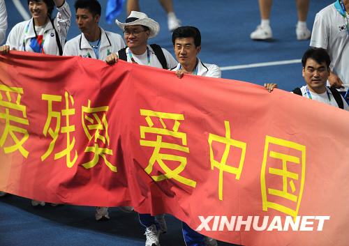 9月17日,北京2008年殘奧會(huì)閉幕式在國(guó)家體育場(chǎng)“鳥(niǎo)巢”舉行。在各國(guó)運(yùn)動(dòng)員入場(chǎng)時(shí),紛紛亮出感謝橫幅。
