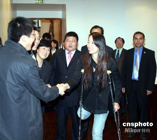 十九日晚,曾與中國奧運火炬手金晶結(jié)下“戰(zhàn)斗友誼”的旅法華僑華人和中國留學生在巴黎舉行歡迎會,以掌聲和親情迎接金晶重返巴黎,訪問法國。圖為金晶與部分一同參與北京奧運火炬巴黎傳遞的華人與留學生火炬手、護衛(wèi)手等“老戰(zhàn)友”喜重逢。中新社發(fā) 吳衛(wèi)中 攝