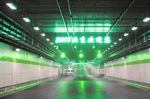地下通道內(nèi)平均每兩三百米就有一個出入口,總計有25個之多。密集的出入口與奧林匹克公園中心區(qū)周邊的北四環(huán)路、成府路、大屯路、科薈路、北辰路等近10條市政道路相通。其中,與地面道路相連的有6個入口和7個出口,與大屯路隧道及成府路隧道相連的有6個入口和6個出口。目前這些地面道路的交通流量都挺大,高峰時段行車緩慢。但在地下,可以一路綠燈地在各條市政道路之間完成快速切換,讓司機的心情像車速一樣暢快。