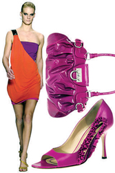 回顧上世紀(jì)80年代的時(shí)尚潮流,自由、開放、眼花繚亂、略帶點(diǎn)頹廢,最明顯的標(biāo)志莫過于色彩的沖撞。那個(gè)年代幾乎將所有的色彩都聚在了一起,對比色、跳躍色、熒光色等?傊,那些純度偏高的色彩總是能給人帶來視覺刺激的愉悅和個(gè)人感情釋放的快感。于是,有了Isabella Fiore的“Love”綠色挎包;L.A.M.B的橙色和綠色拼合運(yùn)動(dòng)茄克;Marc Jacob的黃色露趾平底鞋;Nike的多色相拼運(yùn)動(dòng)連衣裙;Sonia Rykiel的黑白對比色視幻大手鐲……