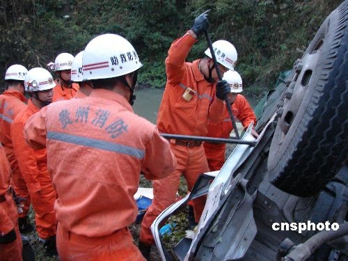 圖:貴州一貨車(chē)失控飛下50米山谷