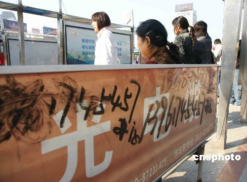 圖:無(wú)錫火車(chē)站廣場(chǎng)站臺(tái)、公話亭上涂滿小廣告