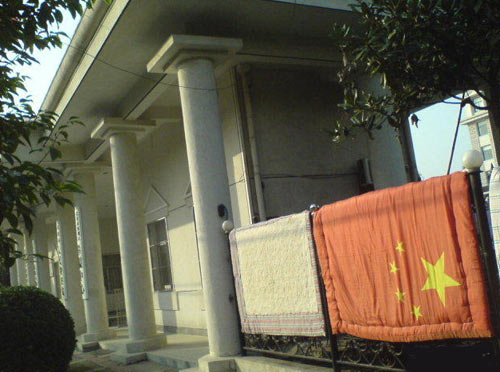圖:國(guó)旗竟被做成被套曬在檢察院門(mén)口