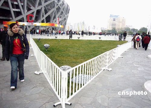 圖:“鳥(niǎo)巢”廣場(chǎng)綠地新增護(hù)欄