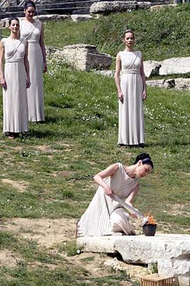 當(dāng)?shù)貢r(shí)間2008年3月24日上午11時(shí)48分,北京奧運(yùn)圣火在古奧林匹克遺址點(diǎn)燃。在圣火采集儀式開始前,慕名而來的人們已經(jīng)率先收獲兩個(gè)驚喜:一是被預(yù)報(bào)可能出現(xiàn)陰雨天氣的奧林匹亞,整個(gè)上午都是艷陽高照;二是希臘總統(tǒng)帕普利亞斯親臨現(xiàn)場(chǎng),而在此之前,希臘總統(tǒng)只在二00四年出席過在本國舉行的雅典奧運(yùn)會(huì)圣火采集儀式。 。[點(diǎn)擊進(jìn)入專題]