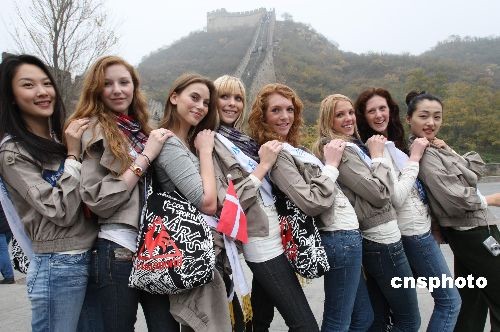 圖:各國模特選手游覽長城