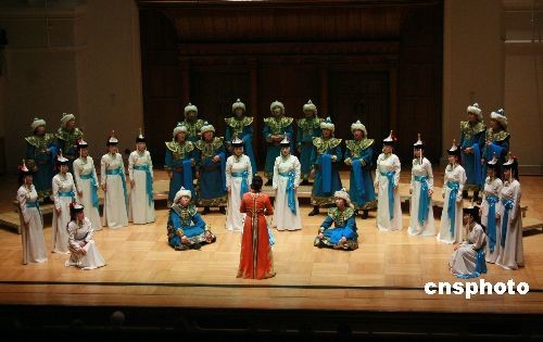 圖:內(nèi)蒙古無(wú)伴奏合唱團(tuán)在倫敦演繹草原天籟