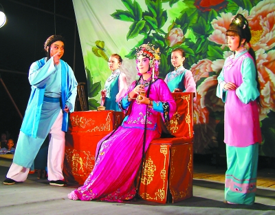 10月13日晚,由福建省閩劇團(tuán),倉(cāng)山區(qū)委宣傳部、區(qū)旅游局、區(qū)傳統(tǒng)文化促進(jìn)會(huì)聯(lián)合舉辦的高雅文化進(jìn)社區(qū)活動(dòng),在倉(cāng)山區(qū)下渡街道舉行。福建省閩劇團(tuán)獻(xiàn)上了《貽順哥燭蒂》、《戰(zhàn)金山》、《甘國(guó)寶》等經(jīng)典閩劇折子戲,吸引了1000多名閩劇愛好者觀看。圖為演員們?cè)诒硌蓍}劇《甘國(guó)寶》。(王鳳山 王光華 攝)
