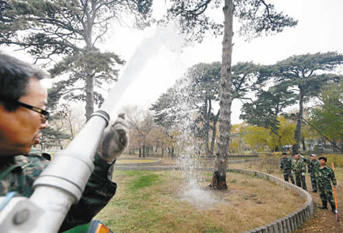 為確保今年綠化成果,保證樹木安全越冬,沈陽(yáng)目前已全面加強(qiáng)今冬明春綠化養(yǎng)護(hù)管理工作。除對(duì)樹木進(jìn)行樹干刷白處理,還將在秋季樹木落葉后至土壤結(jié)凍前、或早春土壤解凍后至樹木萌芽前施肥;在11月中下旬,對(duì)樹木進(jìn)行一次冬灌,明年4月中下旬或5月初,對(duì)樹木進(jìn)行一次春灌;在今年12月至明年2月進(jìn)行樹木修剪;做好越冬防寒工作,對(duì)不同的樹木分別進(jìn)行包裹、涂白、培土、設(shè)置風(fēng)障等。(于海)
