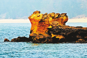 “一半是火焰,一半是海水”。位于儋州峨蔓港的“龍門激浪”,是100萬年前火山噴發(fā)后在海岸線形成的火山巖奇觀。北風(fēng)掀浪,撞于石門,鳴聲如鼓,回響不絕。雖然經(jīng)過100萬多年海水的沖刷,但從火山石千奇百怪的形態(tài)和大面積的擴散、分布中,還是能明顯感覺到火山爆發(fā)時,巖漿迸裂和大規(guī)模流動的痕跡,令人感嘆地質(zhì)運動中大自然的神工和壯觀。