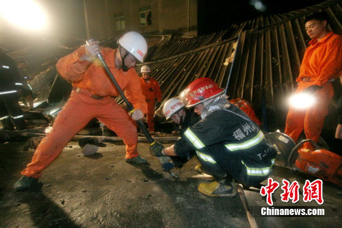 18時(shí)36分,消防官兵從房屋廢墟中救出3名被埋人員;