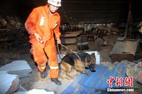 剛剛參加南平抗洪救災(zāi)歸隊(duì)的搜救犬“叮當(dāng)”又投入了新的戰(zhàn)斗,瓦礫上、縫隙中、樓板下“叮當(dāng)”和其它5只“戰(zhàn)友”不停地穿梭搜索,與生命探測(cè)儀配合,準(zhǔn)確定位了6處搜救點(diǎn)。