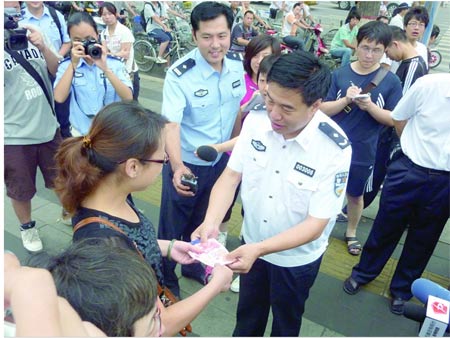 原來(lái),省會(huì)文明辦、石家莊市公安交管局決定出資10萬(wàn)元,在7月10日—7月21日期間,以宣傳倡導(dǎo)、志愿勸導(dǎo)、獎(jiǎng)懲引導(dǎo)為著眼點(diǎn),按照“不定時(shí)間、不定路口、不定對(duì)象”的原則,在全市范圍內(nèi)集中開(kāi)展遵守交通法規(guī)獎(jiǎng)勵(lì)活動(dòng),對(duì)當(dāng)天搜索開(kāi)始后在各路口尋找到的“第一位不闖紅燈的行人”、“第一位不闖紅燈的非機(jī)動(dòng)車騎乘人”進(jìn)行現(xiàn)場(chǎng)獎(jiǎng)勵(lì),每人一次獎(jiǎng)勵(lì)現(xiàn)金500元,以此激發(fā)和調(diào)動(dòng)廣大市民守法出行、文明出行、安全出行的積極性、自覺(jué)性。