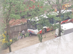 最顛的路是在土崗段和銀貢山莊段!白先ズ喼本拖褡雠鲕嚒!碑?shù)氐木用窀嬖V記者,那兩條路“解放前就有了”,早就被軋得坑坑洼洼。駕駛員每次行駛到水坑前,都不敢過去,“我們經(jīng)常沒事就跑到附近工地撿石頭往里填”。駕駛員們邊開車,邊修路,可還是免不了遭殃——去年一位30多歲的女乘客坐在最后一排,一個大坑過去,這名乘客就被顛折了腰。