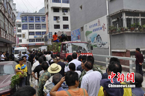 街道上的商店陸續(xù)開業(yè),居民開始在商店里選購自己的缺少的生活物資,物價較災前沒有特別大的波動。受災群眾有序的排隊領(lǐng)取著賑災物資,可以領(lǐng)到蔬菜、方便面、礦泉水等。有的受災群眾陸續(xù)從自家的危房中搬出還可以使用的家具,安置在更加安全的地方。